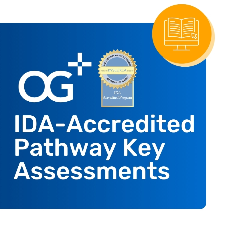 The OG+ IDA-Accredited Pathway Key Assessments are required for educators pursuing an OG+ IDA-Accredited Course Pathway Certificate or applying for IMSE’s Interventionist Certification.